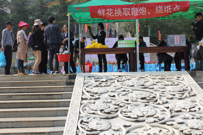 此次活動的舉辦是為了響應政府的號召倡導文明低碳祭掃、綠色生態(tài)殯葬、平安和諧清明的新風尚,盡企業(yè)的一份社會責任,努力實現(xiàn)“環(huán)境提升,服務升級,文明祭祀、平安清明”,同時也為了廣大客戶祭掃提供一個良好優(yōu)美的祭掃環(huán)境和氛圍,舉辦“你在思念誰“清明節(jié)系列活動,通過此次活動的舉辦,能夠與客戶進行相互的交流、溝通,讓客戶感受到祥和園這個大家庭的溫馨。鮮花換燒紙、思念墻、黃絲帶、祈??ㄊ墙衲昵迕鞯囊淮筇厣土咙c,鮮花寄托對親人的思念,體現(xiàn)祥和陵園低碳、綠色祭掃的文明祭掃方式;思念墻,通過思念寄語、心愿清單的填寫,表達對已故親人的哀思;黃絲帶,絲絲牽掛、感恩祝福,掛上許愿樹表達對已故親人的緬懷、對過往的感恩及對未來的展望;祈???,代表著對親人的祝愿,每只卡片承載一份祝福,最終成為一個愿望。鮮花祭故人,祝福寄哀思,寫上寄語,為親人們系上祝福,傳遞著大家對親人的深深祝福。同時也體現(xiàn)了祥和陵園關心生者、關愛逝者、關懷人生的服務理念。祥和園在主干道及山頂、主塔旁新建了焚燒爐和衛(wèi)生間,同時提供多個茶水飲用點,清明祭掃期間,引導客戶到園內(nèi)指定地點焚燒紙錢、燃放鞭炮,倡導文明祭祀、鮮花祭祀,讓我們祥和園的山更綠、空氣更清新,同時讓我們這個滇池度假區(qū)的大環(huán)境爭光添色。