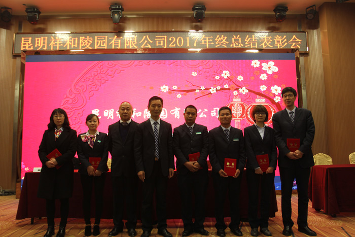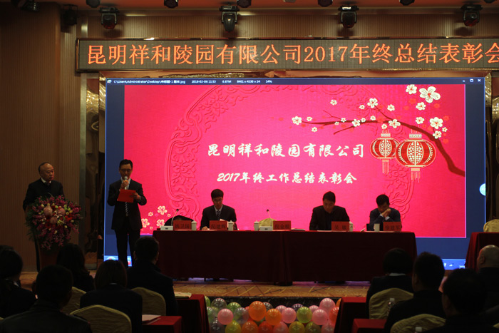 2018年2月7日,在春節來臨之際,祥和陵園在呈貢鑫盛達國際酒店舉辦了2017年度總結表彰大會,公司領導出席了此次會議,公司全體職工、天壽營銷中心以及祥安全體職工參加了祥和陵園2017年度總結表彰會。