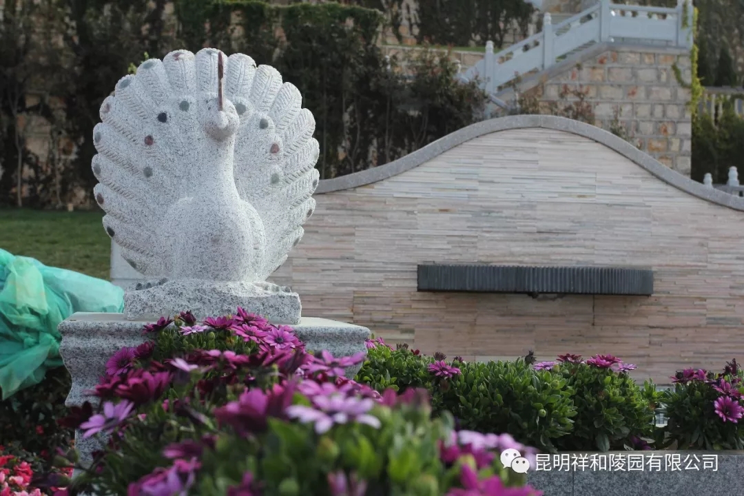 鮮花里的孔雀雕塑