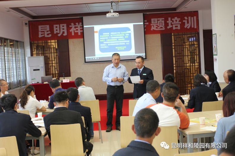 培訓開始前,昆明祥和陵園有限公司總經理倪總作了培訓動員講話,一是公司高度重視、組織有序,希望參加培訓的員工干部珍惜機會,認真學習 ,這次培訓是板塊組織,我們三級企業落實的送教上門培訓,很有榮幸的邀請到了上海知名的培訓講師和教授,機會十分難得,大家一定要珍惜機會,抓好學習。二是集中精力,刻苦學習。這次培訓時間為5天,課程安排豐富多彩,形式多樣、既有講座授課又有案例分析和交流互動,內容也較為實用,與我們日常工作聯系比較密切。希望每位同志都能集中精力,堅持學有所獲、學以致用,抓好學習的消化吸收,使學習培訓真正取得實實在在的效果。三是遵守紀律,保障學習。培訓學習期間,希望大家要遵守作息時間,不缺課、不遲到、不早退、原則上不請假,要遵守課堂紀律,保持良好的課堂秩序,希望切實抓好培訓學習,力爭在理論水平上得到提高、業務能力上有所增強。